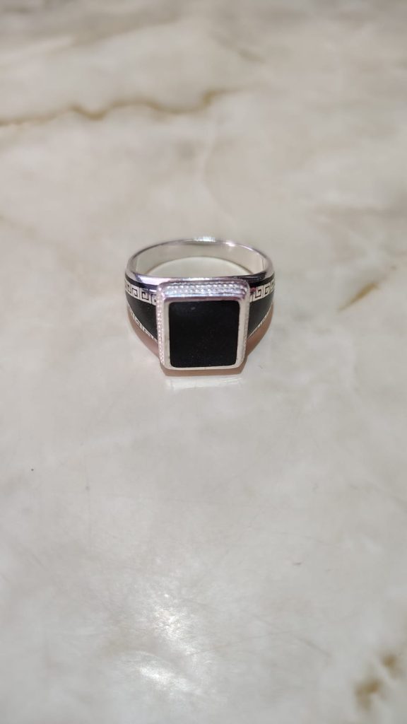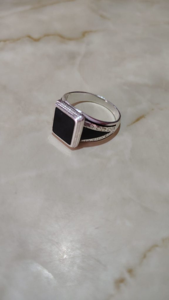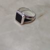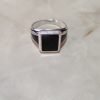 Este es un anillo sello para hombre de plata fina con piedra de ónix negro.