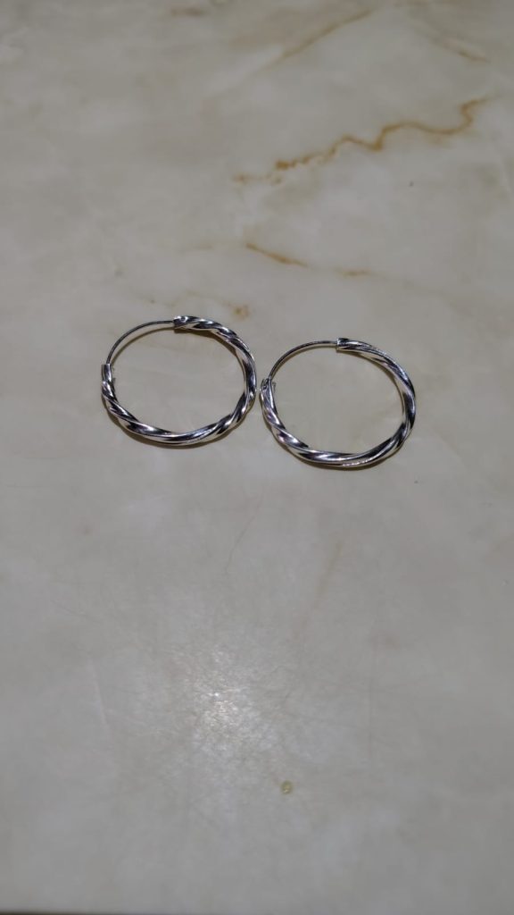 Se trata de aros argolla torcida o entorchada de plata. Están hechos de plata de ley 925 y tienen un diseño que crea un juego dinámico de luces y sombras debido a su forma.