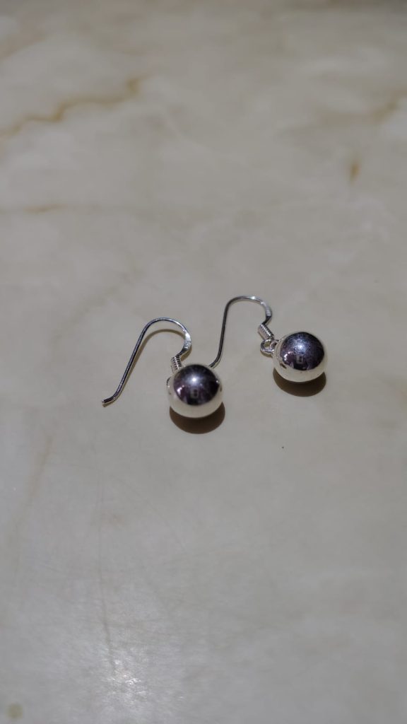 Es un diseño clásico y minimalista, con una esfera pulida unida a un gancho curvo.