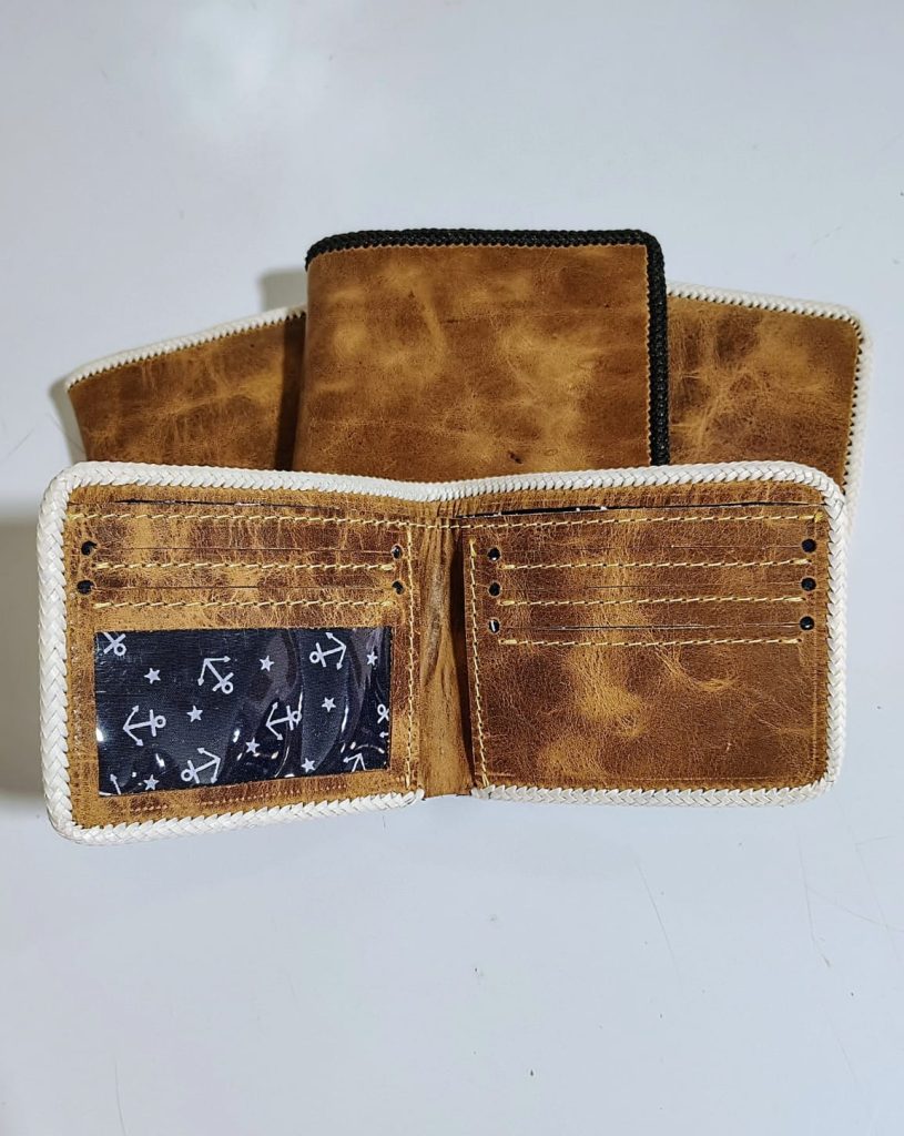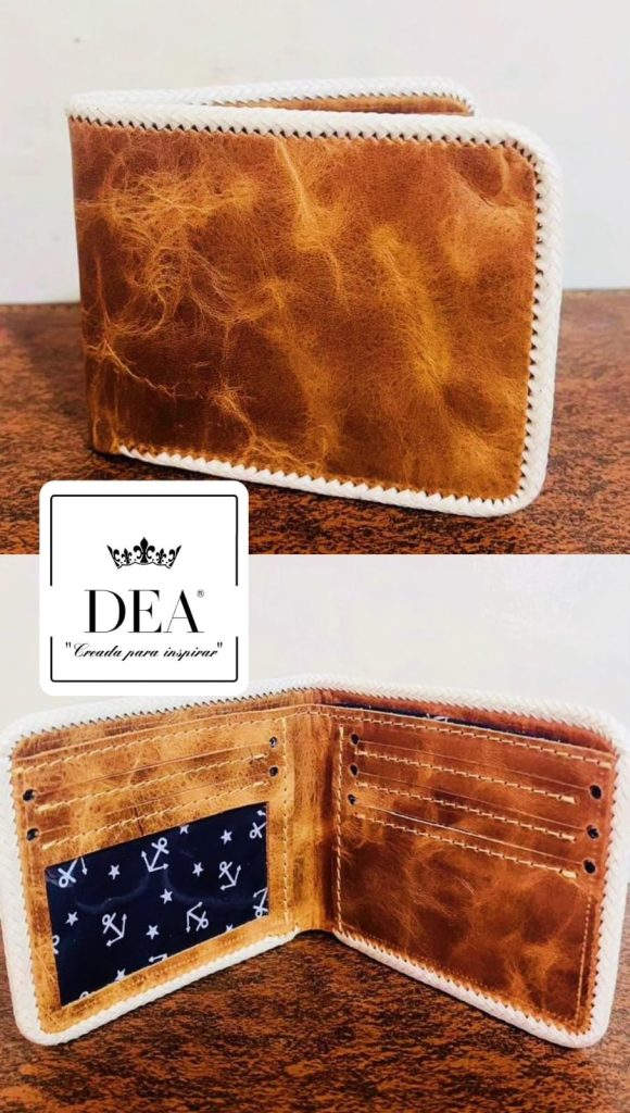 Billetera de cuero color café, cocida con tiento con costura cuyana, con un espacio para almacenar cada una de sus necesidades, caracterizándose por su alta durabilidad y calidad en el producto, lo cual encarna nuestro compromiso como empresa.