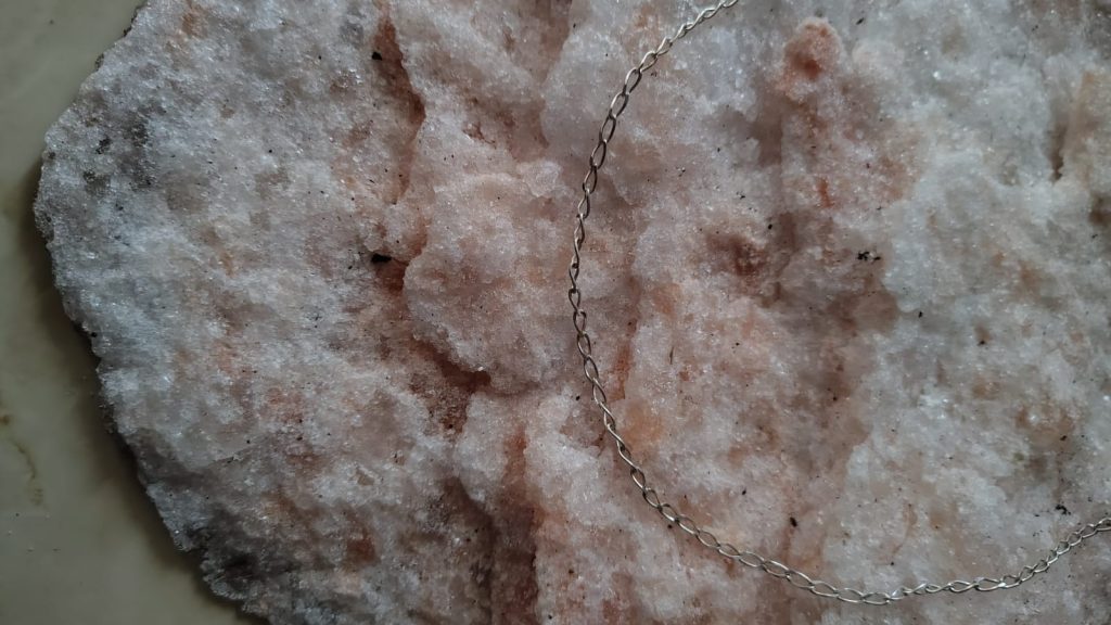 Los eslabones de la imagen parecen ser uniformes, redondos u ovalados, un patrón característico del estilo cable. Si los eslabones son perfectamente redondos y entrelazados, se conoce como cadena Belcher.