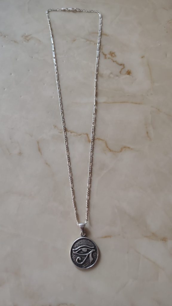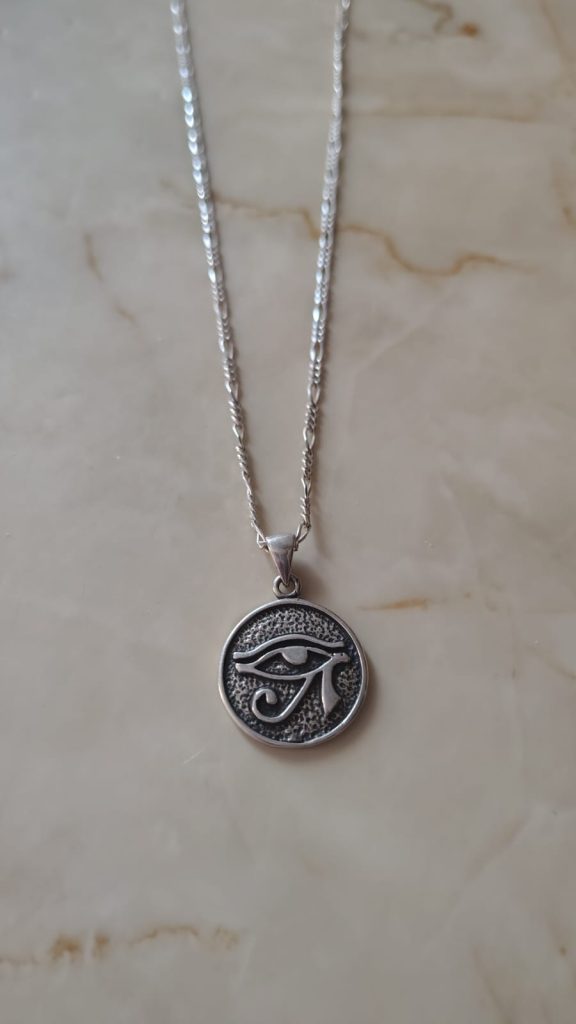 Presenta el Ojo de Horus (también conocido como Uadyet), un antiguo símbolo sagrado egipcio. Este amuleto ofrece una serie de significados y beneficios protectores.