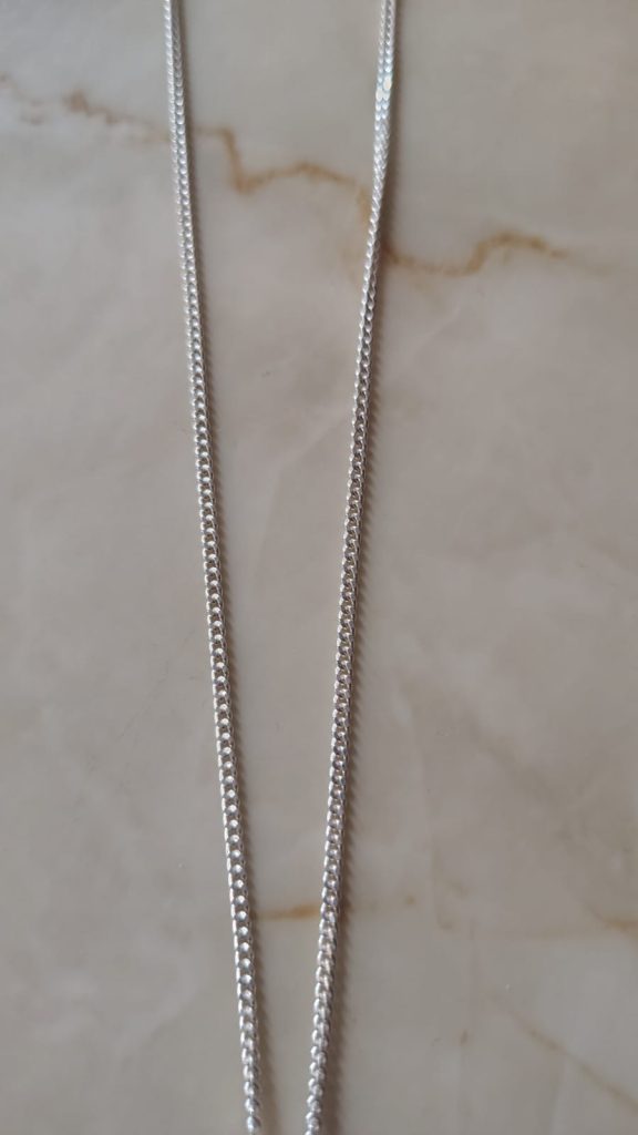La cadena es fina, de tipo eslabón ( «curb chain»).