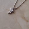 Colgante de colibrí, presenta detalles de circón . La cadena parece ser un diseño de eslabones tipo barra y cuentas.