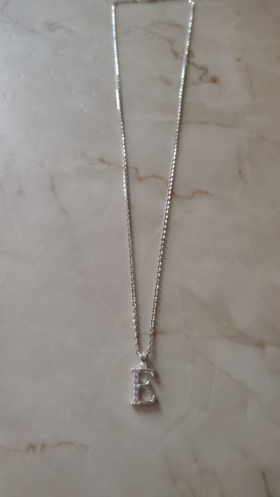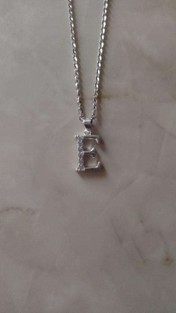 Colgante de la letra «E» hecho de plata de ley 925 y adornado con circonitas.