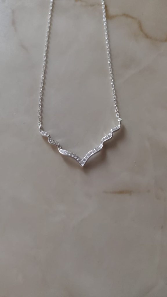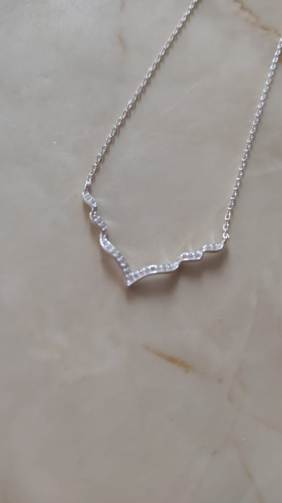 Decorado con pequeñas circonitas, las que dan brillo y elegancia.