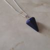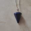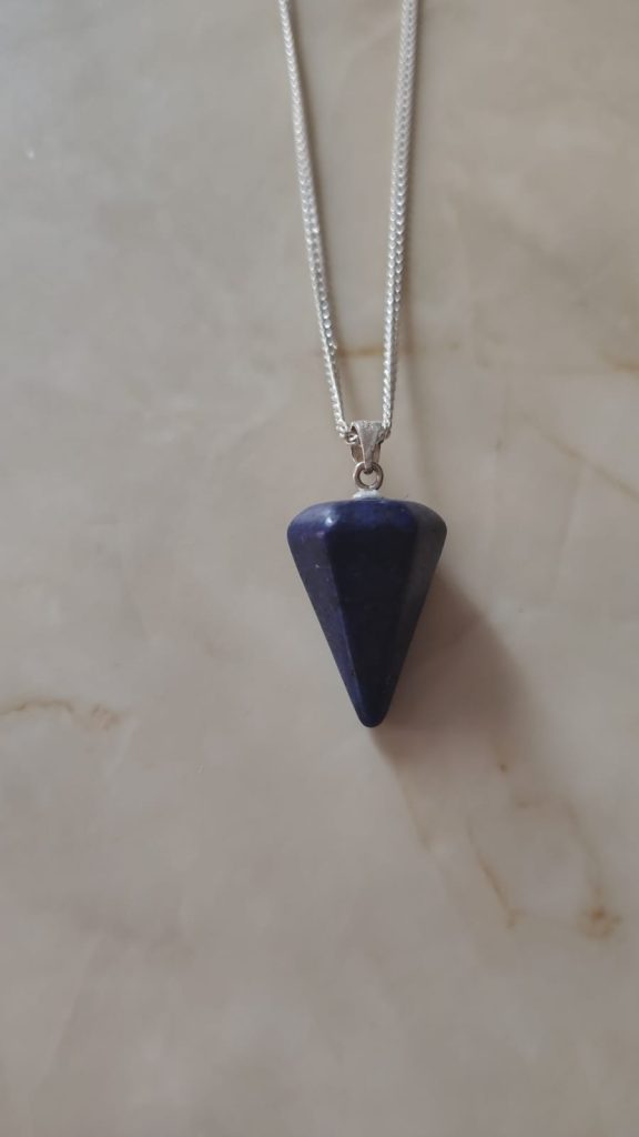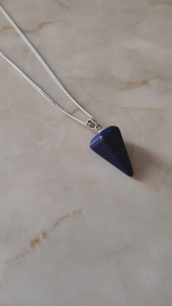 Colgante de péndulo de piedra azul en una cadena delicada de plata.