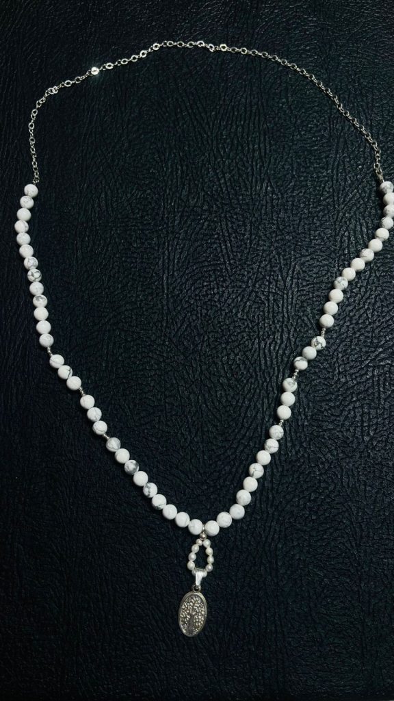 Collar de Piedra natural Ojo de Howlita con colgante arbol de la vida en plata italiana 925.