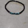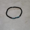 Pulsera de cuentas que combina ónix negro o una piedra volcánica similar con cuentas de turquesa.