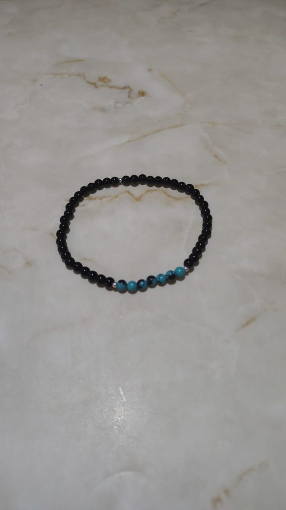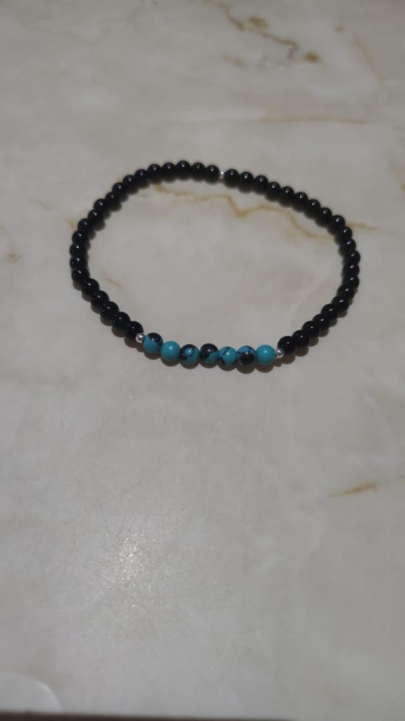 Muchas personas llevan pulseras con este tipo de piedras semipreciosas por sus propiedades metafísicas; se cree que la turquesa es un talismán de esperanza y bienestar, mientras que el ónix ofrece protección contra energías negativas.